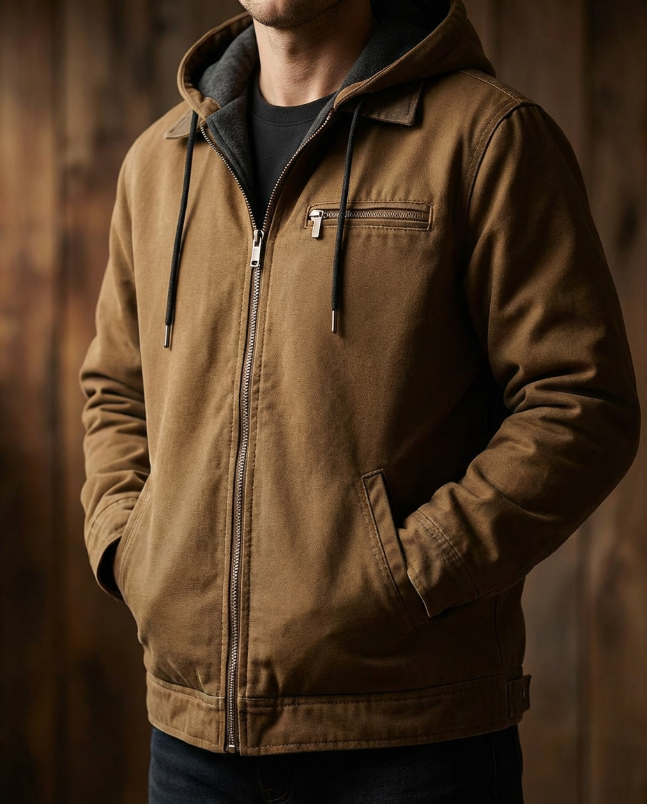 שכבת עבודה משמעותית עם ליבה רכה להפתיע: הז׳קט עם הקפוצ׳ון שלנו משלב את העיצוב שלנו—דמות עבודה קלאסית יחד עם נוחות מודרנית. החוץ בקנבס במראה משומש מעניק גימור עמיד וכפרי, בעוד ריפוד מפנק במגע רך והקפוצ׳ון המתכוונן עוטפים אותך בחום נעים. נולד להליכות בעיר, לבריחות סוף־שבוע וללבוש יומיומי, ומתרכב ללא מאמץ מעל חולצות טי, פלנלים ובדים ארוגים.